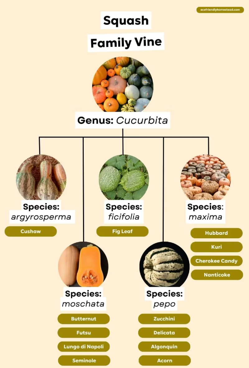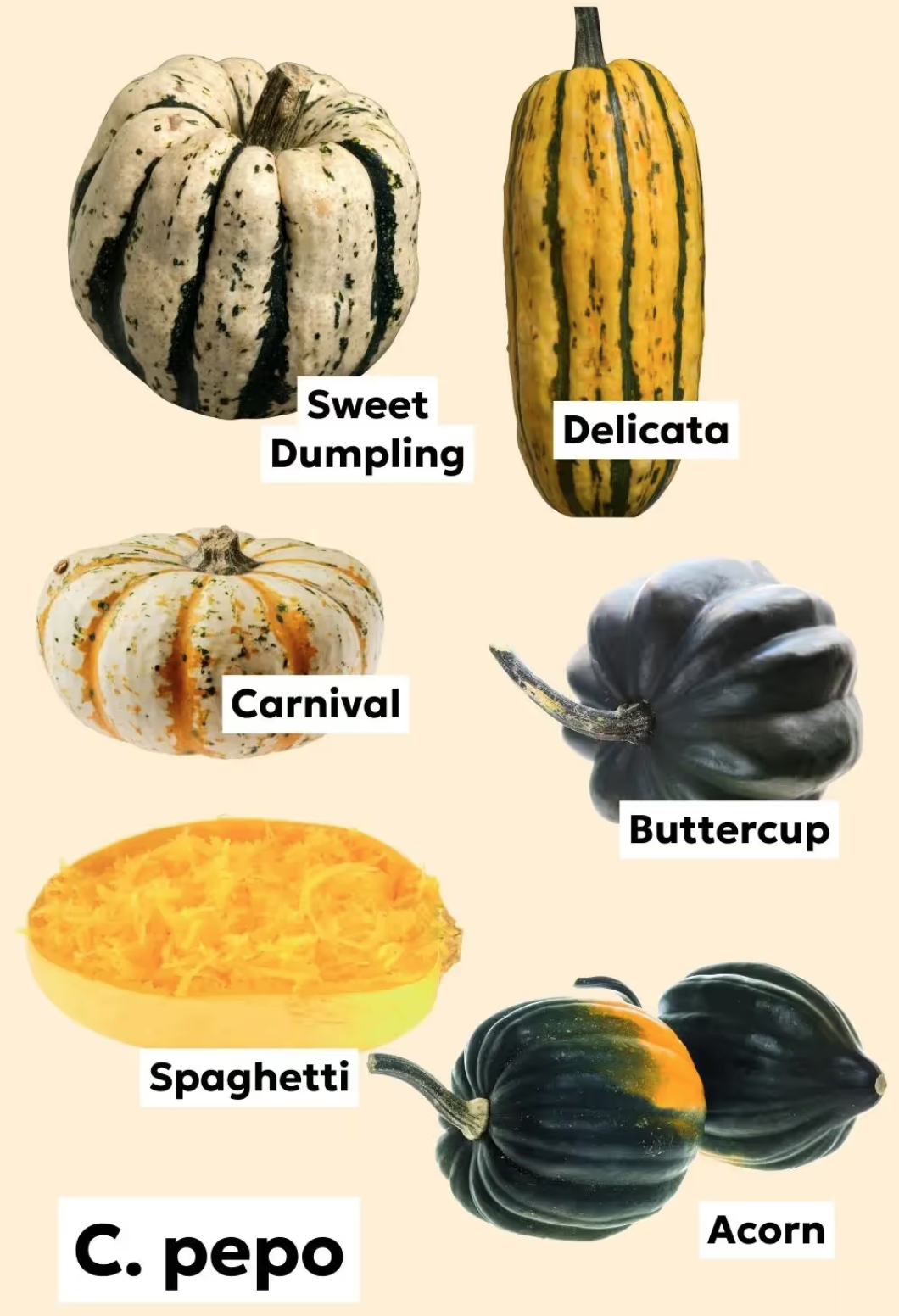 - C. maxima: The giants of the bunch, where you'll find everything from buttercup to kabocha.