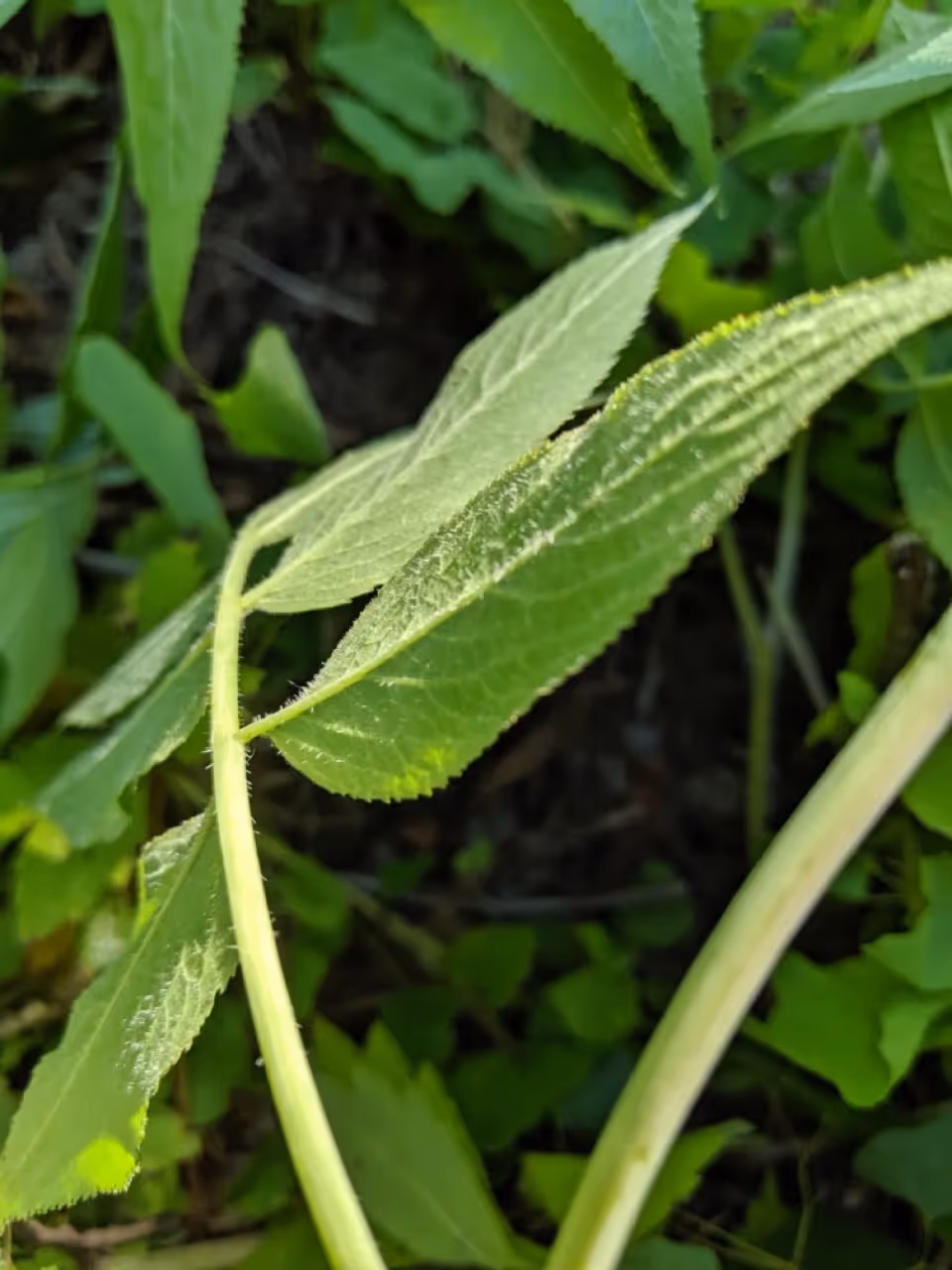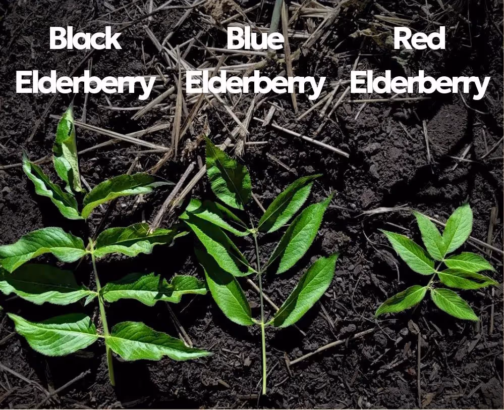 Red elderberry has leaves that are fuzzy - they almost feel like a hazelnut leaf in terms of their softness. Black elderberry leaves are fuzzy as well, but slightly less so.