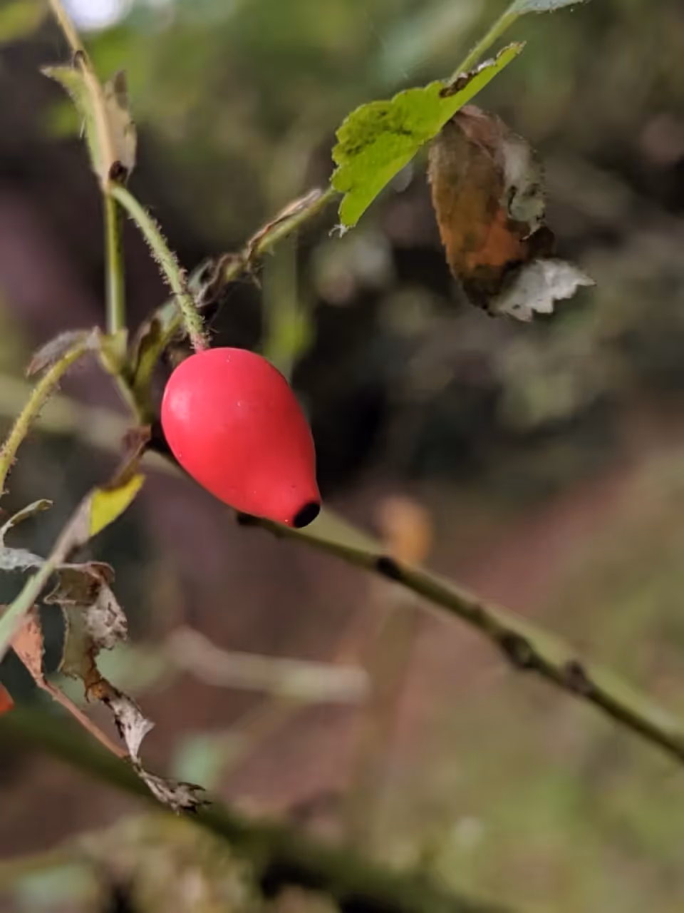 One of the easiest visual component of the baldhip rose to help with ID is its hip/fruit. You can see the sepals have fallen cleanly off of this one from my wooded area