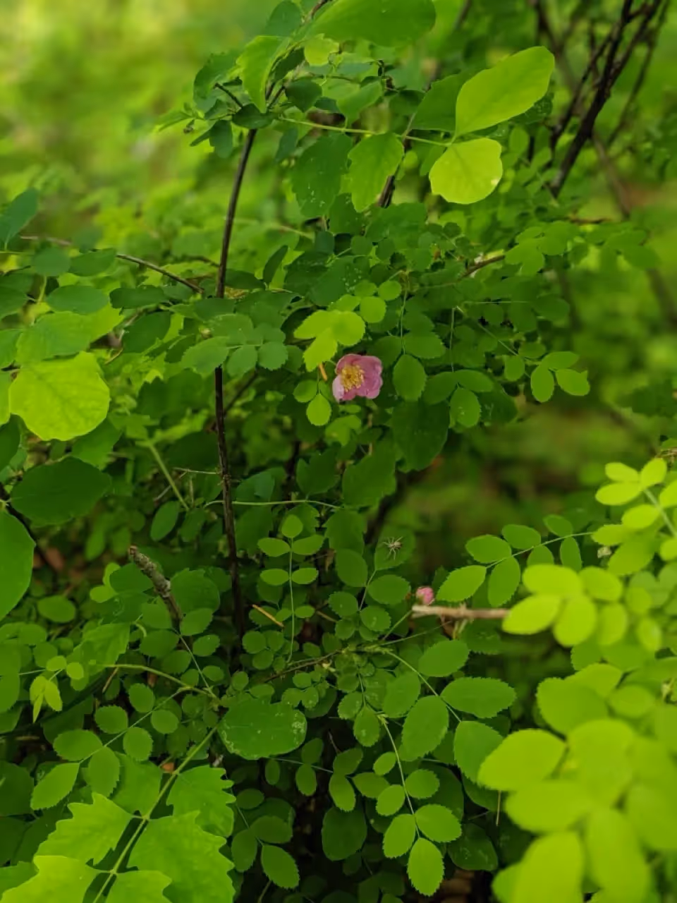 I was thrilled when I first stumbled upon this diminutive rose. In my yard's wooded area, it's often smaller than its other PNW native counterparts, with dainty leaves and small blooms. It's clear why this plant is also called "Dwarf Rose"!