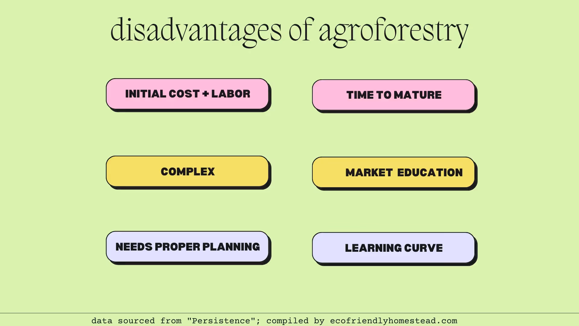 Agroforestry, like any agricultural practice, has some potential disadvantages that might not work with everyone’s goals and resources. The following disadvantages were highlighted in the Savanna Institute mini-documentary, “Persistence”: