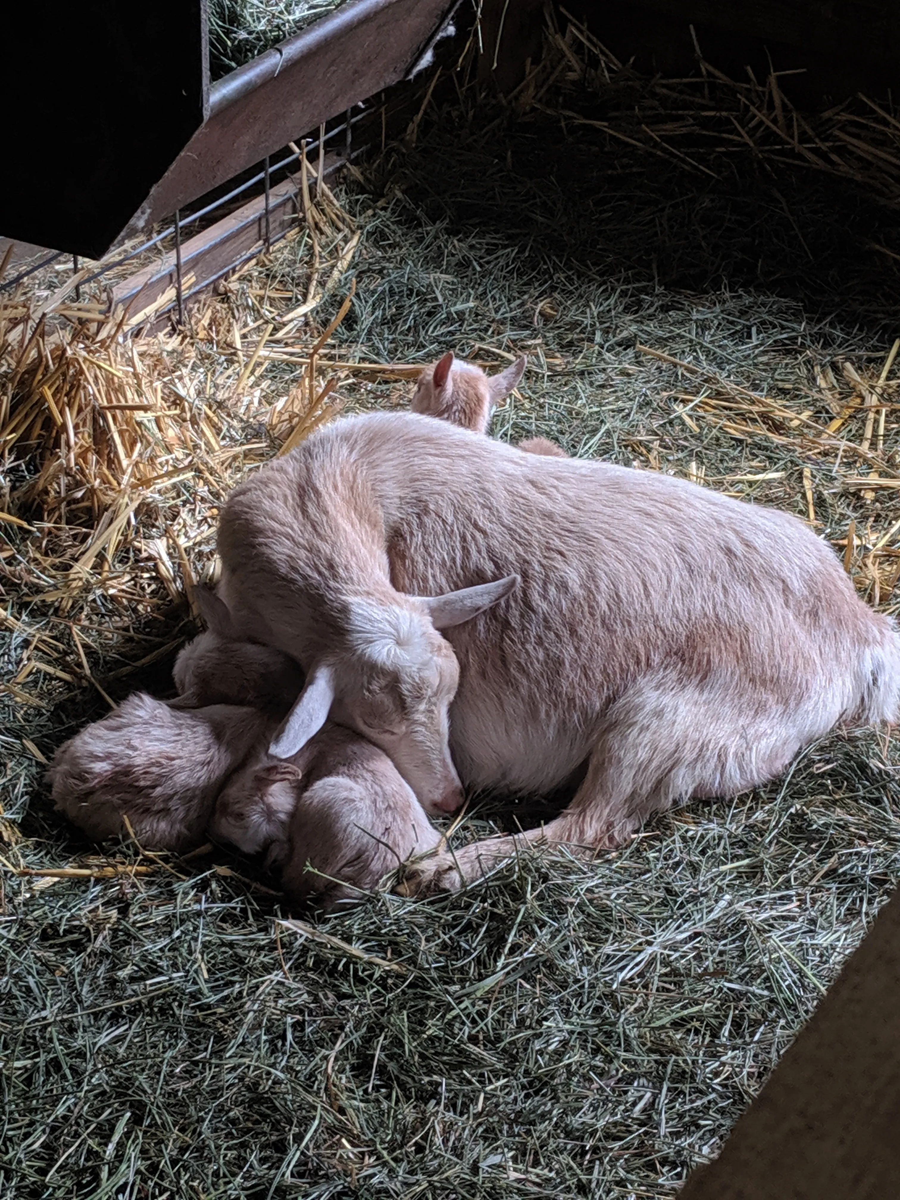 Goats gestate for around 150 days, give or take a week depending on their breed and other factors. When breeding your does to bucks, think about what the weather will be like around 5 months from their “date.” Is it possible that you’ll have a heat wave during that time? Have you had a few unexpected frosts in early April? Take this into consideration - baby goats born during extreme cold or heat are exposed to risks that goats born during “ideal” times wouldn’t have to deal with.